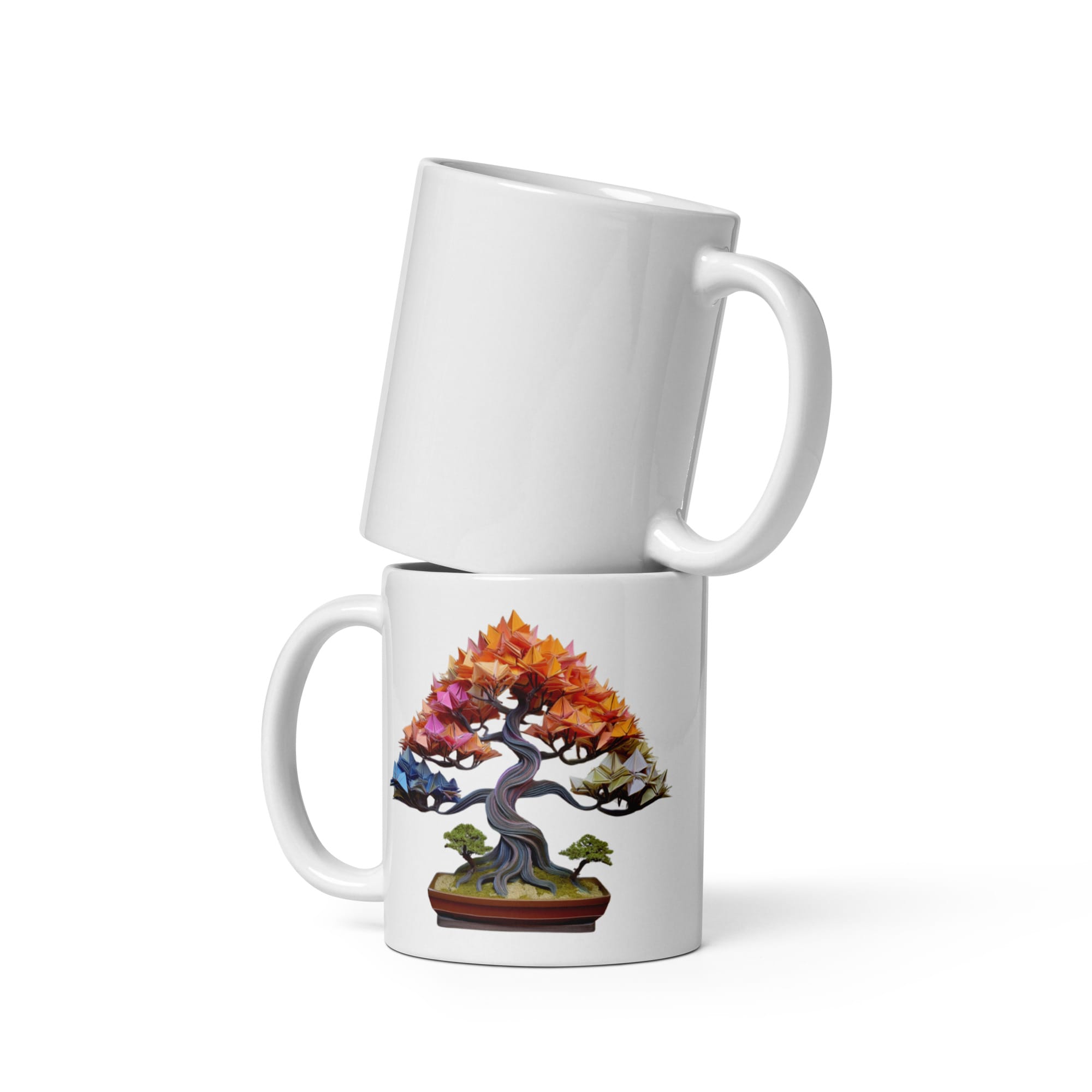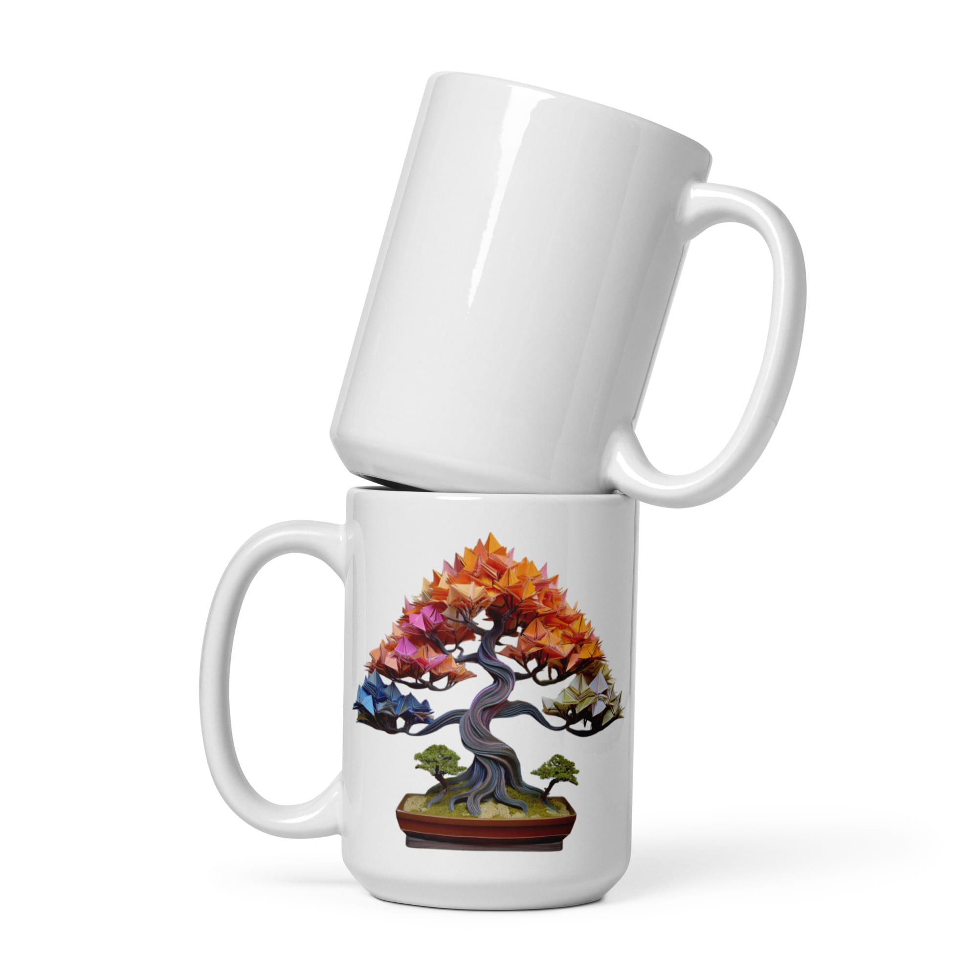 Introducing the Origami Bonsai Tree Mug, a perfect blend of elegance and functionality. This exquisite mug showcases a colorful origami bonsai tree design, intricately printed on one side. Perfect for those who appreciate the beauty of nature and the art of origami, this mug is a charming addition to your drinkware collection. Moreover, its vibrant and glossy finish ensures that the design stands out beautifully.